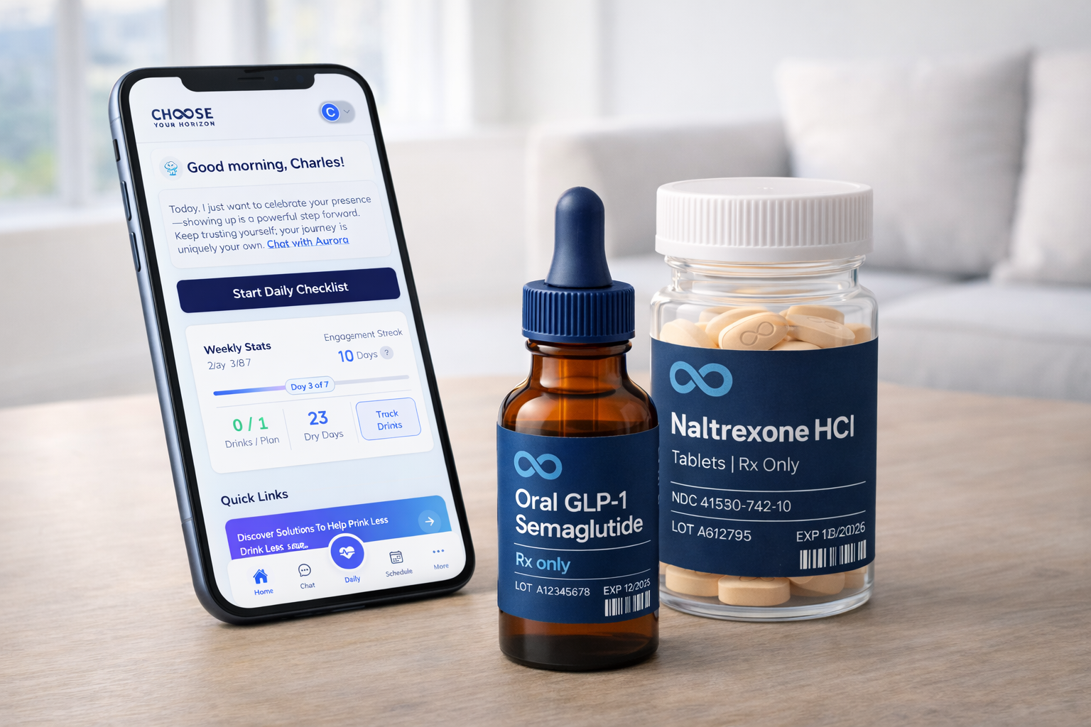 A new approach to help you change your relationship with alcohol. Oral semaglutide (GLP-1), on its own or paired with naltrexone. Two medications targeting cravings from different angles.